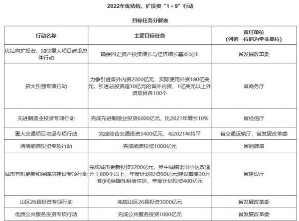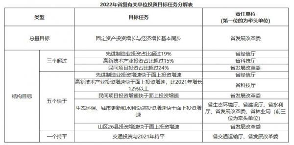 1.擴大有效投資。確保2022年全省固定資產投資增長與經濟增長基本同步。